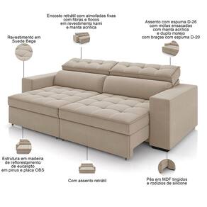 Dono de um visual que promete levar sofisticação e aconchego para a sua casa, o Sofá Retrátil Reclinável Para Sala de Estar Living 246cm Clara, da Lyam Decor, vai transformar os seus dias de descanso, além de elevar a decoração da sala de estar. Por dentro, esse sofá conta com estrutura em madeira de reflorestamento de eucalipto, responsável pela grande durabilidade e resistência, enquanto as percintas elásticas, as molas espirais e ensacadas e a tapeçaria em espuma D-26 garantem o conforto e maciez inigualáveis. Já a versatilidade fica por conta do assento retrátil e do encosto reclinável, o que permitem adequar a posição o sofá de acordo com sua necessidade, seja fechado para receber os amigos, ou aberto e reclinado para curtir aquele filme em família. E aí, bom demais, não é mesmo? Então, aproveite e garanta já o seu!