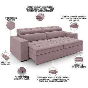 Dono de um visual que promete levar sofisticação e aconchego para a sua casa, o Sofá Retrátil Reclinável Para Sala de Estar Living 246cm Clara, da Lyam Decor, vai transformar os seus dias de descanso, além de elevar a decoração da sala de estar. Por dentro, esse sofá conta com estrutura em madeira de reflorestamento de eucalipto, responsável pela grande durabilidade e resistência, enquanto as percintas elásticas, as molas espirais e ensacadas e a tapeçaria em espuma D-26 garantem o conforto e maciez inigualáveis. Já a versatilidade fica por conta do assento retrátil e do encosto reclinável, o que permitem adequar a posição o sofá de acordo com sua necessidade, seja fechado para receber os amigos, ou aberto e reclinado para curtir aquele filme em família. E aí, bom demais, não é mesmo? Então, aproveite e garanta já o seu!