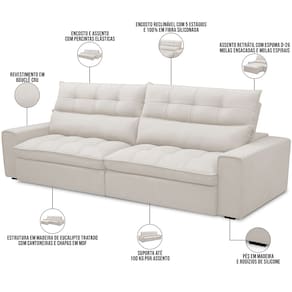Adicione estilo e conforto à sua casa com o Sofá 3 Lugares Retrátil Dimas, da Lyam Decor.