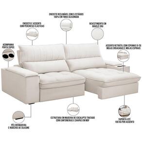 Altura: 115 cm | Color: Branco | ColorFamily: Branco | ColorSimple: Branco | ColorSupplier: Cru | Cor: CRU | Cor dos pés: -1 | Densidade da espuma do assento: D-26 | Desenho do tecido: Liso | Estilo: Moderno | Fabricante: Lyam Decor | Formato do sofá: Linear | Largura: 250 cm | Linha: Sala de Estar, Living | Material: Madeira de lei (Eucalipto) devidamente tratada e aparelhada com reforços e cantoneiras e chapas em M | Material de enchimento do encosto: 100% de Fibra Siliconada | Material do estofamento: Bouclê | MaterialFamily: Tecido, Madeira | Mecanismo de abertura do produto: -1 | Model: Nápoles | Orientação do Sofá: -1 | OriginCountry: Nacional | OriginState: PR | Peso: 85 kg | Peso máximo suportado: 100 kg | ProductContents: 01 Sofá | ProductHeight: 250 cm | ProductInstructions: Produto para uso em ambiente interno, nao devendo ficar exposto ao sol, calor e umidade excessivos. | ProductLength: 110 cm | ProductWarranty: 90 dias após o recebimento do produto | ProductWeight: 85 kg | ProductWidth: 115 cm | Profundidade: 110 cm | Quantidade de Caixas de embalagem: 1 | Requer montagem: Não | SizeDescription: Altura: 115 cm x Largura: 250 cm x Profundidade: 96 cm | SupplierSimpleName: Sofá Retrátil Reclinável Para Sala de Estar Living 250cm Nápoles F04 Bouclê Cru - Lyam Decor | Tipo de produto: Sofá | Unidades por kit: 1
