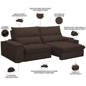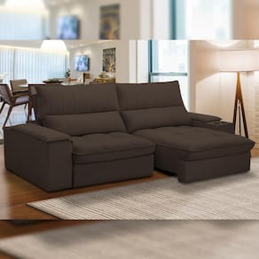 Altura: 115 cm | Color: Marrom | ColorFamily: Marrom | ColorSimple: Marrom | ColorSupplier: Marrom | Cor: Marrom | Cor dos pés: -1 | Densidade da espuma do assento: D-26 | Desenho do tecido: Liso | Estilo: Moderno | Fabricante: Lyam Decor | Formato do sofá: Linear | Largura: 250 cm | Linha: Sala de Estar, Living | Material: Madeira de lei (Eucalipto) devidamente tratada e aparelhada com reforços e cantoneiras e chapas em M | Material de enchimento do encosto: 100% de Fibra Siliconada | Material do estofamento: Veludo | MaterialFamily: Tecido, Madeira | Mecanismo de abertura do produto: -1 | Model: Nápoles | Orientação do Sofá: -1 | OriginCountry: Nacional | OriginState: PR | Peso: 85 kg | Peso máximo suportado: 100 kg | ProductContents: 01 Sofá | ProductHeight: 250 cm | ProductInstructions: Produto para uso em ambiente interno, nao devendo ficar exposto ao sol, calor e umidade excessivos. | ProductLength: 110 cm | ProductWarranty: 90 dias após o recebimento do produto | ProductWeight: 85 kg | ProductWidth: 115 cm | Profundidade: 110 cm | Quantidade de Caixas de embalagem: 1 | Requer montagem: Não | SizeDescription: Altura: 115 cm x Largura: 250 cm x Profundidade: 95 cm | SupplierSimpleName: Sofá Retrátil Reclinável Para Sala de Estar Living 250cm Nápoles F04 Veludo Marrom - Lyam Decor | Tipo de produto: Sofá | Unidades por kit: 1