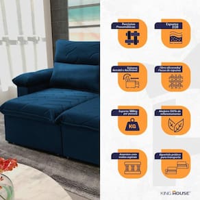 Ele possui encosto reclinável em cinco posições, proporcionando-lhe mais conforto na hora do descanso. Não para por aí: seu assento retrátil conta com espuma D28 e molas espirais, transformando seu sofá em uma verdadeira cama para assistir seu filme preferido.