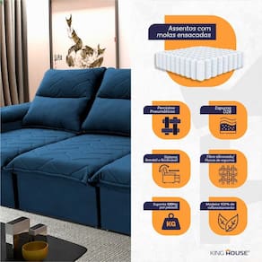 Ele possui encosto reclinável em cinco posições, proporcionando-lhe mais conforto na hora do descanso. Não para por aí: seu assento retrátil conta com espuma D28 e molas ensacadas, proporcionando conforto extra, transformando seu sofá em uma verdadeira cama para assistir seu filme preferido.