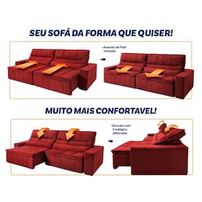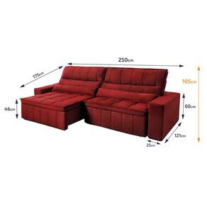 Sofá Retrátil Reclinável Supremo 2,50m Velut Vermelho c/ Molas