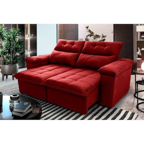 Ele possui encosto reclinável em cinco posições, proporcionando-lhe mais conforto na hora do descanso. Não para por aí: seu assento retrátil conta com espuma D28 e molas espirais, transformando seu sofá em uma verdadeira cama para assistir seu filme preferido.