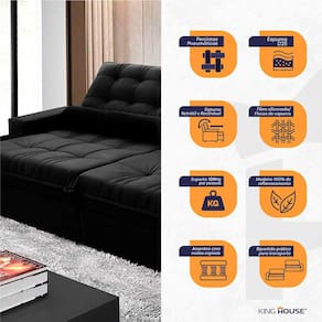 Ele possui encosto reclinável em cinco posições, proporcionando-lhe mais conforto na hora do descanso. Não para por aí: seu assento retrátil conta com espuma D35 e molas espirais, transformando seu sofá em uma verdadeira cama para assistir seu filme preferido.