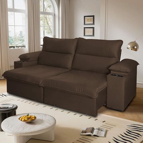 O sofá Teslaoferece encosto reclinável com cinco posições, permitindo ajustar o conforto ideal para relaxar. Seu assento retrátil é feito com espuma D28 e possui suporte com percintas elásticas e molas bonel, proporcionando um nível de conforto semelhante ao de uma cama - perfeito para maratonar suas séries ou assistir a um bom filme. Além disso, o sofáTeslatraz conveniência com porta-copos e carregador USB embutidos sob a Almofada dos braços retráteis, para que você possa manter suas bebidas e dispositivos ao alcance enquanto relaxa. As almofadas nos braços são preenchidas com fibra siliconada, garantindo maciez extra para momentos de descanso completo.