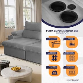 O sofá Teslaoferece encosto reclinável com cinco posições, permitindo ajustar o conforto ideal para relaxar. Seu assento retrátil é feito com espuma D28 e possui suporte com percintas elásticas e molas bonel, proporcionando um nível de conforto semelhante ao de uma cama - perfeito para maratonar suas séries ou assistir a um bom filme. Além disso, o sofáTeslatraz conveniência com porta-copos e carregador USB embutidos sob a Almofada dos braços retráteis, para que você possa manter suas bebidas e dispositivos ao alcance enquanto relaxa. As almofadas nos braços são preenchidas com fibra siliconada, garantindo maciez extra para momentos de descanso completo.