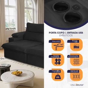 O sofá Teslaoferece encosto reclinável com cinco posições, permitindo ajustar o conforto ideal para relaxar. Seu assento retrátil é feito com espuma D28 e possui suporte com percintas elásticas e molas bonel, proporcionando um nível de conforto semelhante ao de uma cama - perfeito para maratonar suas séries ou assistir a um bom filme. Além disso, o sofáTeslatraz conveniência com porta-copos e carregador USB embutidos sob a Almofada dos braços retráteis, para que você possa manter suas bebidas e dispositivos ao alcance enquanto relaxa. As almofadas nos braços são preenchidas com fibra siliconada, garantindo maciez extra para momentos de descanso completo.