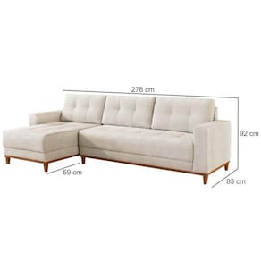 Largura total: 278 cmProfundidade: 83 cmProfundidade c/ chaise: 142 cmAltura: 92 cmPeso: 55 KgGarantia: 03 mesesInformações Adicionais: Não possuímos serviço de montagem. Todos os móveis possuem garantia e manual de montagem, Não nos responsabilizamos pelos custos de montagem. É de extrema importância ficar atento às dimensões dos produtos, pois é de sua total responsabilidade caso o produto tenha dimensões superiores ao local de acesso da entrega dificultando ou impossibilitando que a mesma seja concluída. Não nos responsabilizamos, no ato da entrega, por subir escadas, corredores e elevadores ou transporte por guincho em apartamentos. Não nos responsabilizamos por transtornos com a entrega caso o produto necessite de desmontagem, nem pelos custos gerados por esta situação. Imagens meramente ilustrativas a cor, pode variar de acordo com a iluminação do ambiente. Itens de decoração não inclusos.