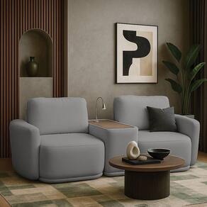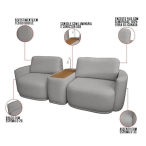 Sofá Sala Modulado 271cm Com Console Usb Luminária Brumma Bouclê K01 - D'rossi Cor Cinza O Sofá Modulado 271cm Brumma Bouclê é a escolha perfeita para quem busca conforto, funcionalidade e um design contemporâneo. Ele é composto por dois assentos com braços nas laterais e um console central que oferece diferenciais únicos para o dia a dia. Seu revestimento em tecido bouclê traz um toque sofisticado e aconchegante, enquanto a estrutura em madeira de eucalipto com reforços em MDF garante durabilidade e estabilidade. Os assentos contam com percintas elásticas, molas espirais e espuma D-33, entregando firmeza e conforto superior. Já os encostos são fixos e contam com almofadas soltas e removíveis. O destaque fica por conta do console central funcional, equipado com tampo amadeirado, luminária articulada rosqueável e entrada USB, ideal para leitura ou recarga de dispositivos eletrônicos.. Os módulos são independentes e podem ser reorganizados com facilidade conforme o seu espaço, oferecendo versatilidade total na composição do ambiente. Dimensões Gerais (2 módulos e console): Altura Total: 90 cm Largura Total: 271 cm Profundidade Total: 103 cm Peso Total: 70 kg Dimensões por Módulo de Assento (com braço lLateral): Altura: 90 cm Largura por Módulo: 117 cm Profundidade: 103 cm Altura do Chão ao Assento: 45 cm Largura útil do Assento: 90 cm Profundidade útil do Assento: 55 cm Altura do Encosto (a partir do assento): 41 cm Espessura de cada braço lLateral: 17 cm Peso por módulo: 33 kg Dimensões do Console Central (sem braço): Altura: 52 cm Largura: 37 cm Profundidade: 89 cm Peso do console: 4 kg Especificações do Produto: Estrutura: Madeira de Eucalipto ; Reforços com cantoneiras e chapas em MDF Base Interna do Encosto: Percintas elásticas Base Interna do Assento: Percintas elásticas + molas espirais Espuma do Assento: D-33 (alta qualidade) Espuma do Braço: D-26 (alta qualidade) Revestimento: Bouclê Possui luminária: Sim, articulada, com fixação rosqueável Possui USB: Sim, embutido no console Possui Pés: Sim Material dos Pés: Madeira na cor , fixados com parafusos Console: Com tampo amadeirado, luminária articulada e conector USB Possui Rodízios: Não Peso Suportado: Até 150 Kg por assento Tipo de Encosto: Fixo, preenchido com 100% fibra siliconada e almofada solta Tipo de Assento: Fixo Modularidade: Módulos independentes que podem ser realocados conforme o espaço disponível Quantidade de Assentos: 2 É Retrátil: Não É Reclinável: Não Diferenciais: Design modular, console funcional com luminária e conector USB Sistema de Montagem: Não requer montagem estrutural Manual de Montagem Incluso: Não Complexidade da Montagem: Baixa Montagem: Produto vai montado, requer apenas o encaixe dos módulos. Garantia: 90 dias contra de fabricação Instruções de Limpeza: Utilizar um pano limpo e levemente úmido Quantidade de Volumes: 3 Caixas Medida das Embalagens: Caixa 1: 119x105x77cm; Caixa 2: 119x105x77cm; Caixa 3: 91x54x39cm : É feita somente até o térreo ou portaria. Confira sempre as medidas das embalagens para assegurar que o produto passe por portas e escadas do .