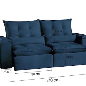 • Design sofisticado: Disponível em várias cores e acabamentos, para combinar com a decoração da sua sala. Produto Montado: Não Acompanha Almofadas extras: 02 Almofada do assento: Fixa Almofada do encosto: Fixa Altura do assento até o chão: 50.0000 Altura do Encosto: 53 cm Altura dos Pés: 5 cm Ambiente Principal: Sala de Estar codigo_ean: 7909903955956 Cor: Azul Marinho Cor do Produto: Azul Marinho Densidade do Assento: D-28 Enchimento do Assento: Espuma Enchimento do Encosto: Fibra Siliconada Firmeza do Assento: Médio Informações Complementares: Assento com molas bonnel Itens Inclusos: 01 Sofá San Paulo Material dos Pés: Madeira Montagem Flex: Não Necessita Montagem: Não Origem do Produto: Nacional Peso: 32 kg Pet Friendly: Não Porta Copos: Não Possui Baú: Não Possui Entrada USB: Não Possui Percintas Elásticas: Sim Possui Pés: 08 Possui Rodízio: Sim Recomendações de Uso, Manutenção e Limpeza: Limpar com pano levemente umedecido. Não utilzar produtos abrasivos. Revestimento do Braço: Veludo Rodízio com Trava: Não Suporta Até (kg): 120 kg Tecido Predominante: Veludo Tipo de Encosto: Regulável Tipo de Mola: Molas Bonnel Marca: DECOR LAR