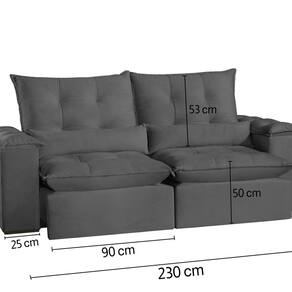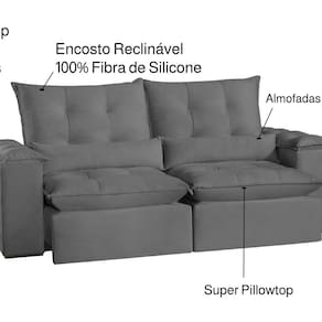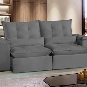 Sofá San Paulo Retrátil e Reclinável - Assento com Molas – 230 cm Veludo Cinza Cinza