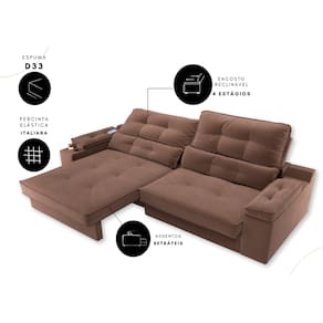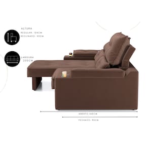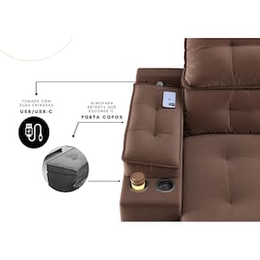 O Santiago é uma luxuosa peça de mobiliário, oferecendo um amplo conforto com seus 200 cm de largura. Sua funcionalidade retrátil e reclinável permite ajustes personalizados para um relaxamento ideal. Revestido com suede importado, proporciona uma sensação de suavidade ao toque e uma estética elegante. Além disso, possui um toque moderno com porta-copos embutidos nos braços, proporcionando praticidade, e uma entrada USB integrada para carregar dispositivos móveis enquanto relaxa. É importante observar que as cores podem variar conforme as configurações do monitor, e os acessórios mostrados nas fotos não acompanham o produto. Marca: Cialar