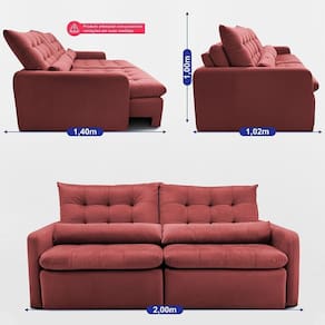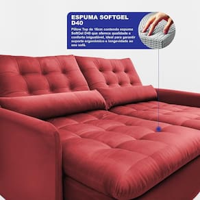 Sofá Sem Caixa Retrátil 2,00m Softgel Celeste Velusoft Vermelho Cama Inbox