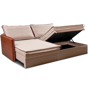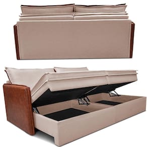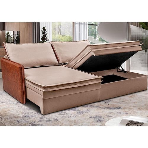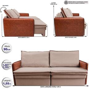 Sofá Sem Caixa Retrátil Baú 1,55m Cama Inbox Grace Tecido Linho E Courino Bege Escuro