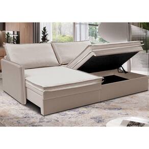 Sofá Sem Caixa Retrátil Baú 1,55m Lounge Linho Bege Claro Cama Inbox