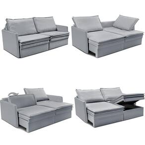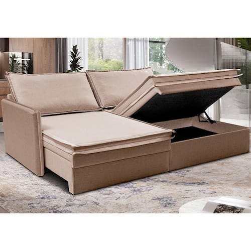 Sofá Sem Caixa Retrátil Baú 1,55m Lounge Linho Bege Escuro Cama Inbox