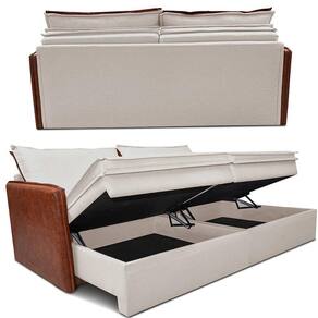 Sofá Sem Caixa Retrátil Baú 1,75m Cama Inbox Grace Tecido Linho E Courino Bege Claro