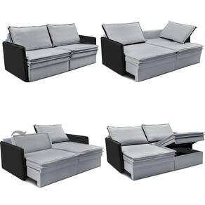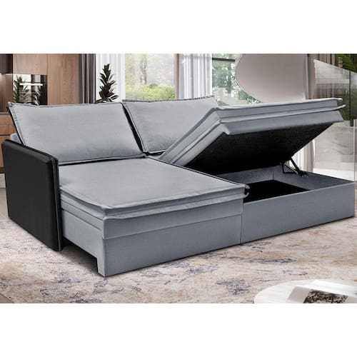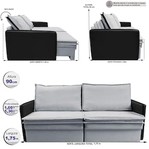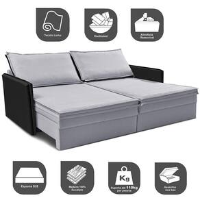 Sofá Sem Caixa Retrátil Baú 1,75m Cama inBox Grace. Tecido Linho e Courino - Cinza Claro