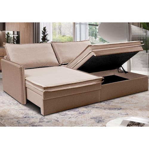 Sofá Sem Caixa Retrátil Baú 1,75m Cama inBox Lounge. Tecido Linho - Bege Médio