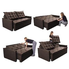 Sofá Sem Caixa Retrátil E Reclinável 1,65m Cama Inbox Flat Linho Marrom