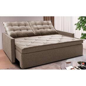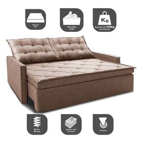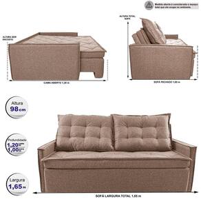 Sofá Sem Caixa Retrátil e Reclinável 1,65m Cama inBox Flat. Linho - Bege Médio
