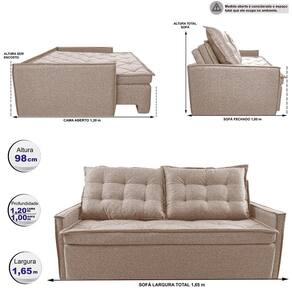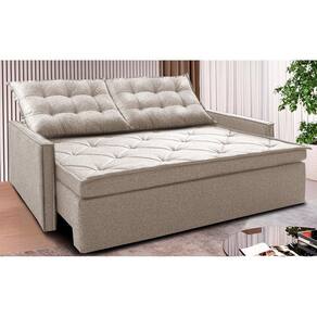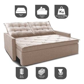 Sofá Sem Caixa Retrátil e Reclinável 1,65m Cama inBox Flat. Linho - Bege Claro