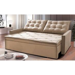 Sofá Sem Caixa Retrátil E Reclinável 1,65m Cama Inbox Studio Suede Velusoft Bege