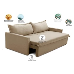 Encosto:Composto por 2 almofadas soltas com enchimento de 80% fibra e 20% flocos que proporcionam maciez e conforto.