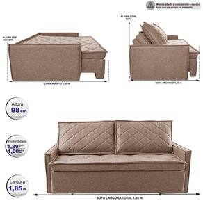 Medidas do Produto Montado: Altura: 98cm Profundidade como Sofá: 1,00m Profundidade como Cama: 1,20m Largura: 1,85m