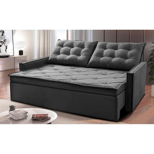 Sofá Sem Caixa Retrátil E Reclinável 1,85m Cama Inbox Studio Suede Velusoft Cinza