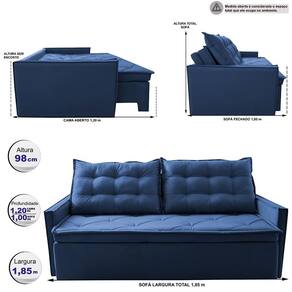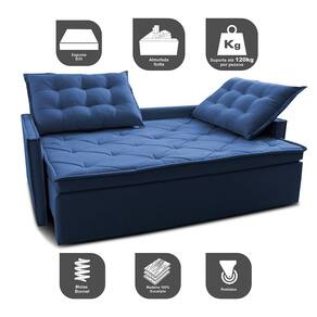 Sofá Sem Caixa Retrátil e Reclinável 1,85m Cama inBox Studio. Suede Velusoft - Azul Marinho
