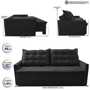 Sofá Sem Caixa Retrátil e Reclinável 1,85m Cama inBox Studio. Suede Velusoft - Preto