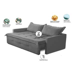 Encosto:Composto por 2 almofadas soltas com enchimento de 80% fibra e 20% flocos que proporcionam maciez e conforto.