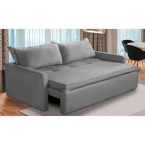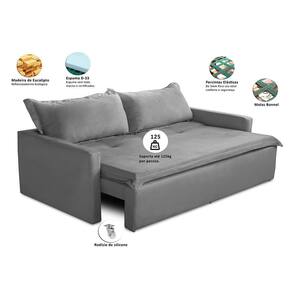 Sofá Sem Caixa Retrátil e Reclinável 1,85m com Molas Kiara Suede Cinza Adonai Estofados