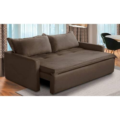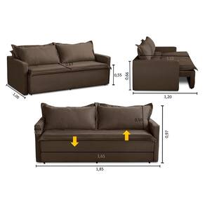 Encosto:Composto por 2 almofadas soltas com enchimento de 80% fibra e 20% flocos que proporcionam maciez e conforto.
