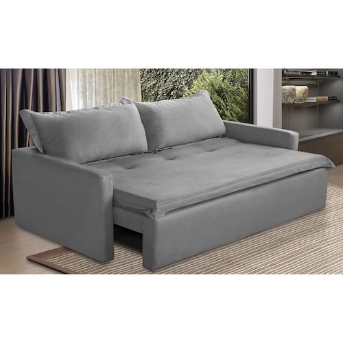 Sofá Sem Caixa Retrátil e Reclinável 2,00m com Molas Luzia Suede Cinza Madelina Decor