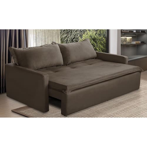 Sofá Sem Caixa Retrátil e Reclinável 2,00m com Molas Luzia Suede Marrom Madelina Decor