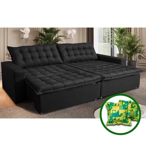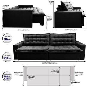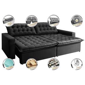 Sofá Sem Caixa Retrátil Reclinável 2,15m Cama inBox França. Velusoft - Preto