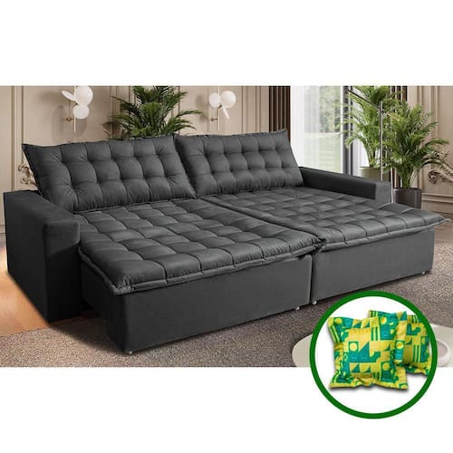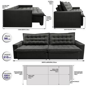 Sofá Sem Caixa Retrátil Reclinável 2,15m Cama inBox França. Velusoft - Cinza