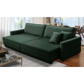 Sofá Sem Caixa Retrátil Reclinável 2,50m Karen Veludo Verde Adonai Estofados