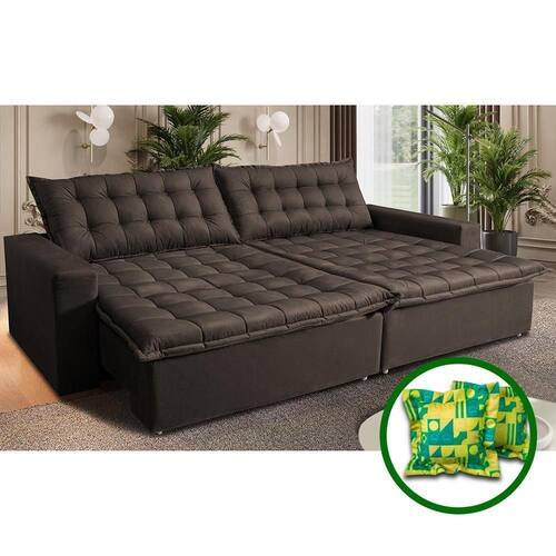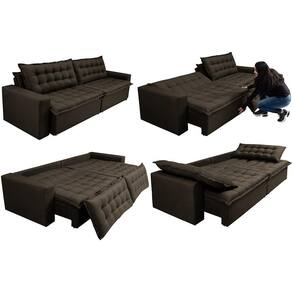Sofá Sem Caixa Retrátil Reclinável 2,95m Cama Inbox França Velusoft Café