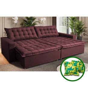 Sofá Sem Caixa Retrátil Reclinável 2,95m Cama Inbox França Velusoft Vinho