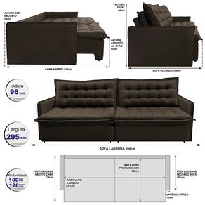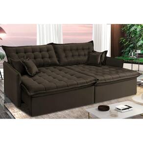 Sofá Sem Caixa Retrátil Reclinável 2,95m Cama inBox Versátil. com Pillow Top e Molas Velusoft - Marrom