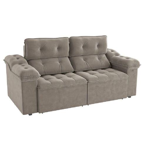 Apresentamos o Sofa Sierra 260cm com Molas Ensacadas Retratil e Reclinavel Kappesberg, combina robustez e conforto. Com estrutura resistente, sistema de rodizios e trilho de madeira, e facil de manusear. Retratil e ajustavel em seis posicoes, possui espumas certificadas e revestimento em veludo cinza. Os puxes detalhados garantem um acabamento elegante. Ideal para conforto e beleza no seu espaco.