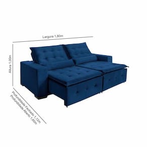 Medidas do Produto:Altura: 1,05mtCumprimento fechado: 1,25cmCumprimento aberto: 1,60cmLargura: 1,80cmInformações Extras:Peso suportado: 120kg por pessoaGarantia: 3 mesesFabricante: De casa décor e estofadosInformações Importantes:- OS TECIDOS PODEM SOFRER ALTERAÇÕES DE TONALIDADES DEPENDENDO DO LOTE DE PRODUÇÃO E TAMBÉM DA RESOLUÇÃO DA TELA DO SEU MONITOR/CELULAR.- Os objetos que ambientam as fotos não acompanham o produto.