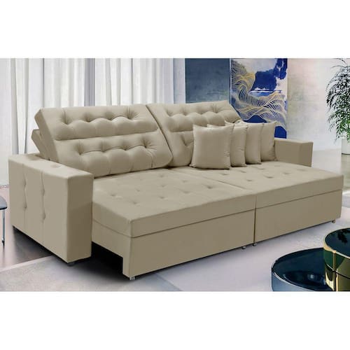 Sofá Texas 3.00m Retrátil e Reclinável - Bege