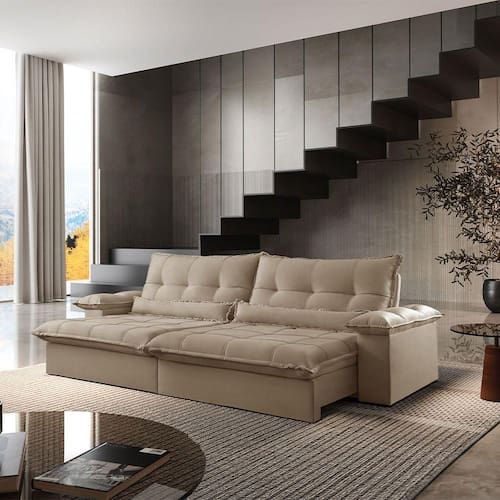 Design diferenciado, qualidade impecavel. A sua sala de estar so esta completa na presenca de um bom sofa e nada mais gostoso do que receber a familia ou curtir os seus momentos de descanso junto com nosso modelo Vega! Pensado para quem quer aliar bom gosto uma estrutura reforcada para o uso diario, a peca tem madeira na composicao e revestimento de toque agradavel para garantir a qualidade que voce merece.