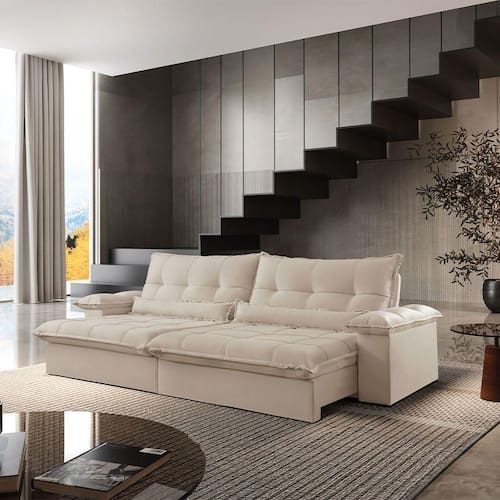 Design diferenciado, qualidade impecavel. A sua sala de estar so esta completa na presenca de um bom sofa e nada mais gostoso do que receber a familia ou curtir os seus momentos de descanso junto com nosso modelo Vega! Pensado para quem quer aliar bom gosto uma estrutura reforcada para o uso diario, a peca tem madeira na composicao e revestimento de toque agradavel para garantir a qualidade que voce merece.